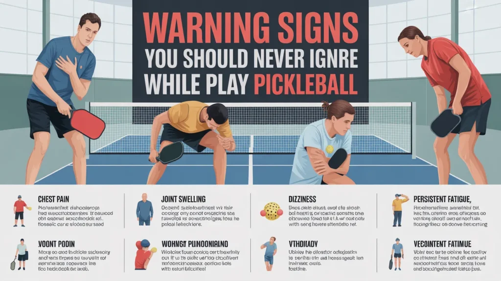 While playing pickleball during pregnancy, certain warning signs mean you should stop immediately and seek medical advice. Ignoring them can be dangerous for you and your baby.