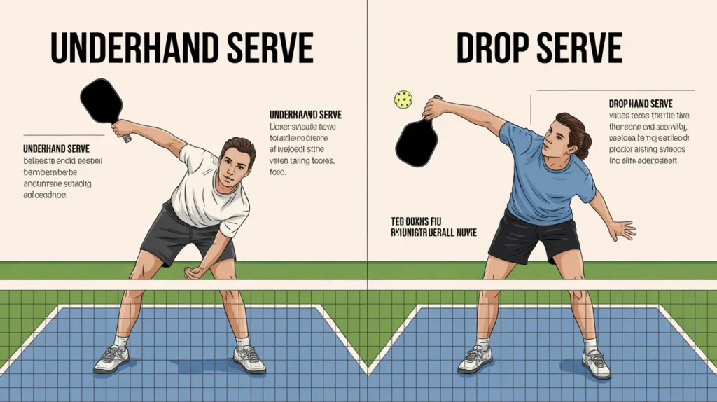 Pickleball allows two legal serves: the underhand serve and the drop serve. Both are useful, but they follow different rules and suit different skill levels.