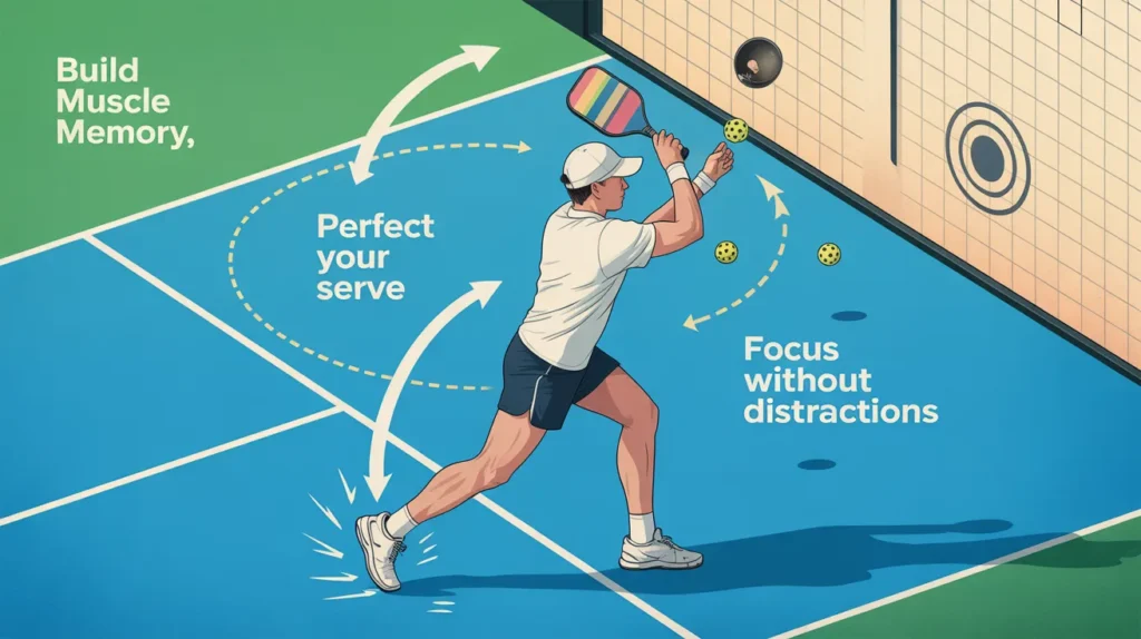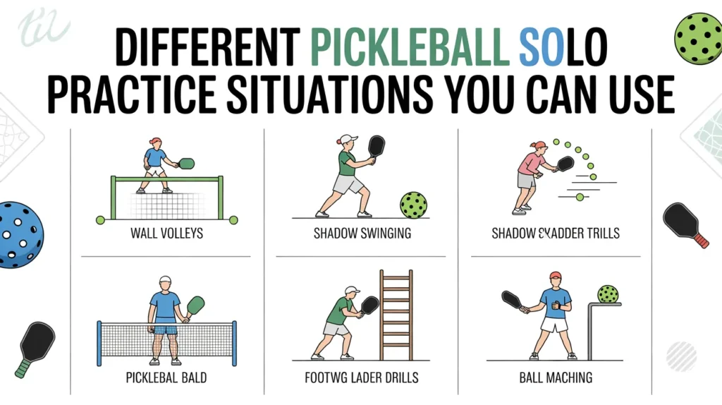 How to practice pickleball alone quick guide showing wall drills, serve practice, and footwork training with simple solo exercises for beginners