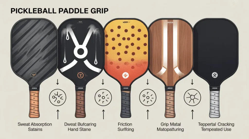 Pickleball paddle grips naturally wear out over time. Regular play, sweat, and friction slowly break down the grip material, making it less comfortable and harder to hold during games.