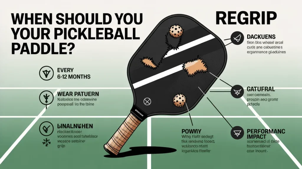 You should regrip your paddle when the handle starts feeling slippery, rough, or uncomfortable. A worn grip can affect control and make it harder to play consistent shots during games.