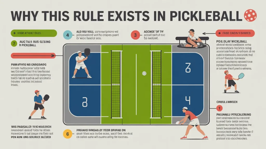 This rule was created to stop players from rushing the net too fast. It gives both teams equal time to get into position. It also makes rallies longer and more enjoyable, especially for beginners.